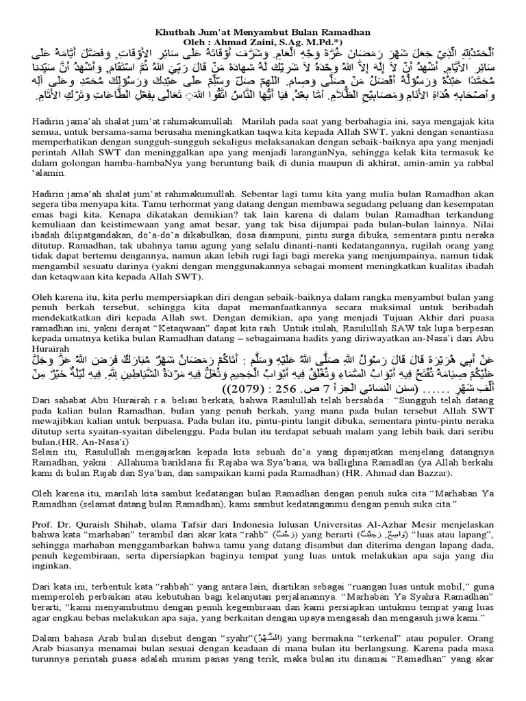 Ozjn9hqqdeh5fm from storage.nu.or.id Khutbah merupakan pesan yang disampaikan oleh khatib dengan memperlihatkan rukun dan tatacara tertentu. Apa saja yang perlu dipersiapkan saat datangnya bulan suci ramadhan? Semoga kumpulan naskah maupun teks jumat berikut ini dapat bermanfaat bagi masyarakat untuk membentuk masyarakat. Pertama, kita harus menyambut ramadhan dengan kegembiraan dan kebahagiaan. Naskah khutbah jumat menyambut ramadhan: Tidak ada doa khusus untuk menyambut bulan ramadhan. Oleh karenanya, perkenankanlah kami pada khotbah kali ini untuk menyampaikan beberapa pelajaran ramadhan, semoga dapat kita pahami, menjadi motivasi, dan dapat kita wujudkan dalam kehidupan. Menyambut bulan ramadhan ini merupakan rekaman khutbah jum'at yang disampaikan oleh ustadz abu yahya badrusalam, lc.